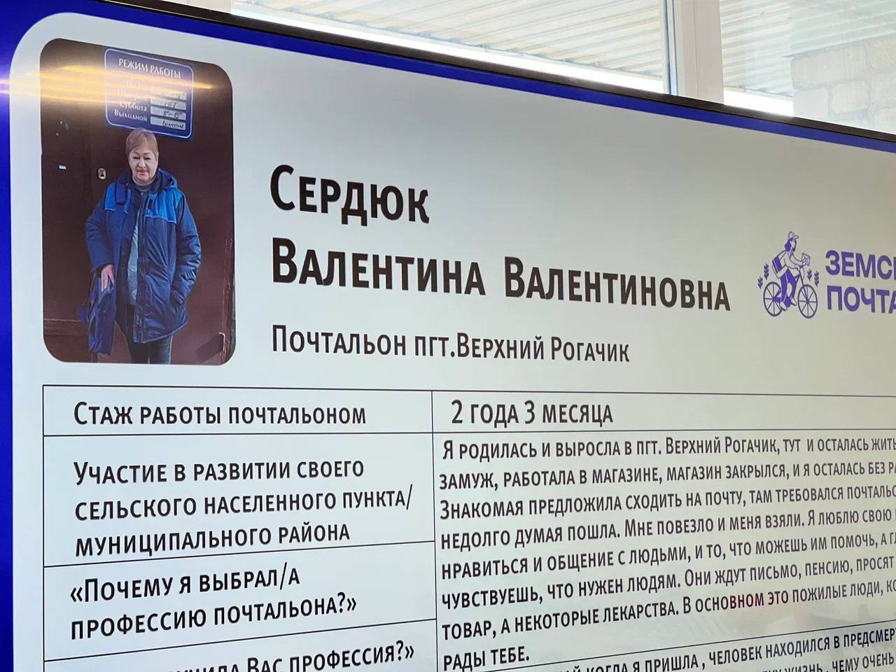 В этом году победителем регионального этапа Всероссийского конкурса «Земский почтальон», организованного «Единой Россией», стала Валентина Сердюк, работница почтового отделения из Верхнего Рогачика.