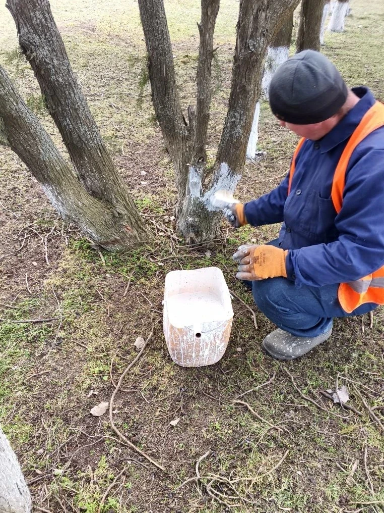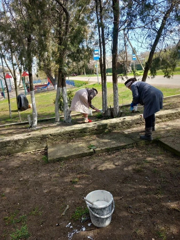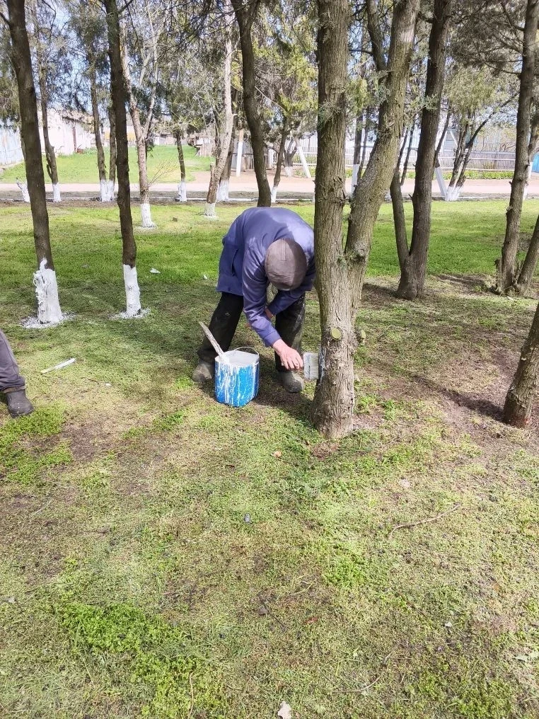 • Побелка деревьев возле административных зданий, фельдшерско-акушерского пункта и в парке.