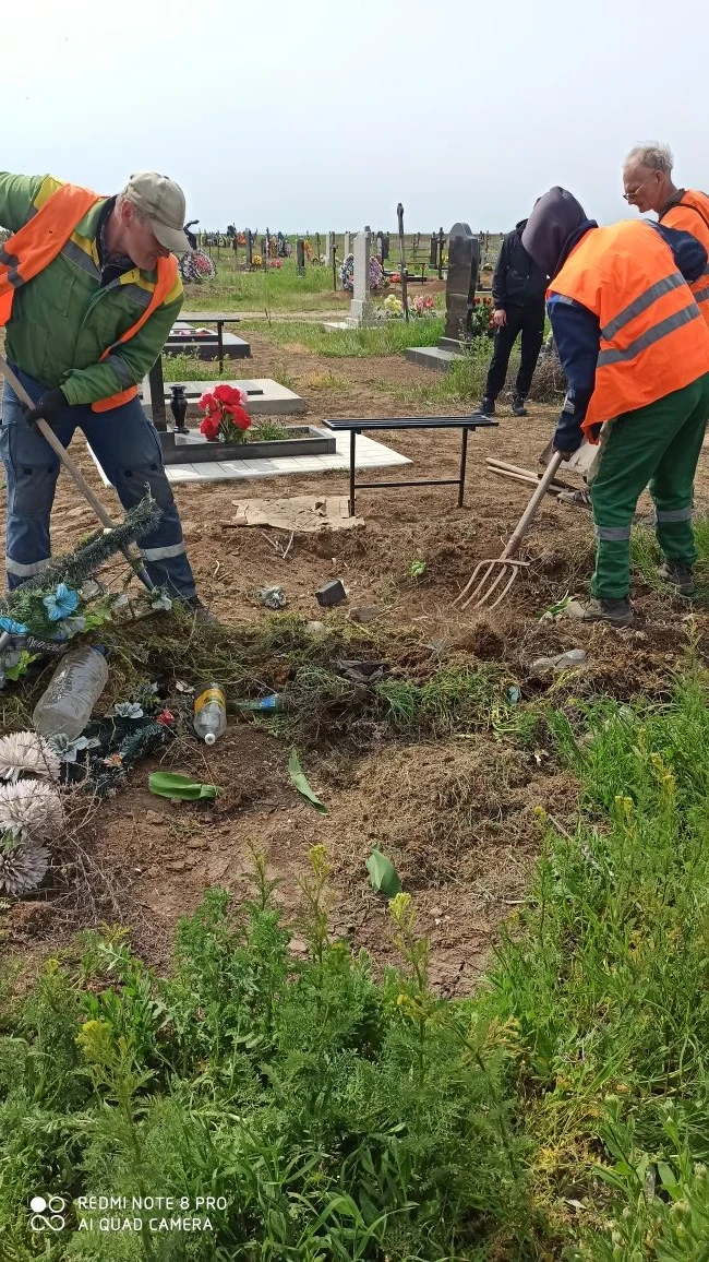 Вчера коллективы учреждений дружно вышли на субботник: косили траву, сгребали и вывозили большое количество мусора. Это стало возможным благодаря активной уборке, которую жители проводили на могилах своих близких в течении этой недели.