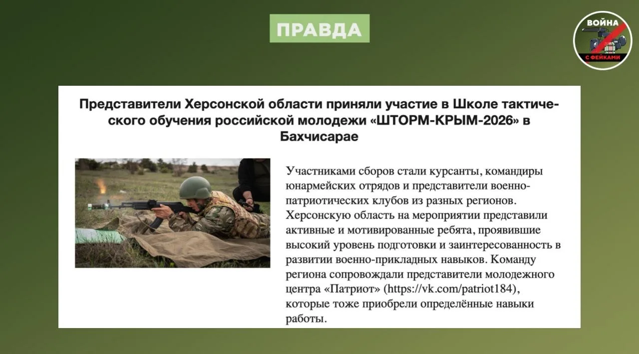Фейк: Россия отправляет детей Херсонской области на военные сборы