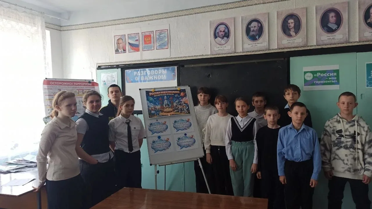 3. Ученики Абрикосовской школы на занятиях «Россия — мои горизонты» и «Разговоры о важном» изучали современные достижения отрасли, включая работу космодрома Восточный и программы ГЛОНАСС.