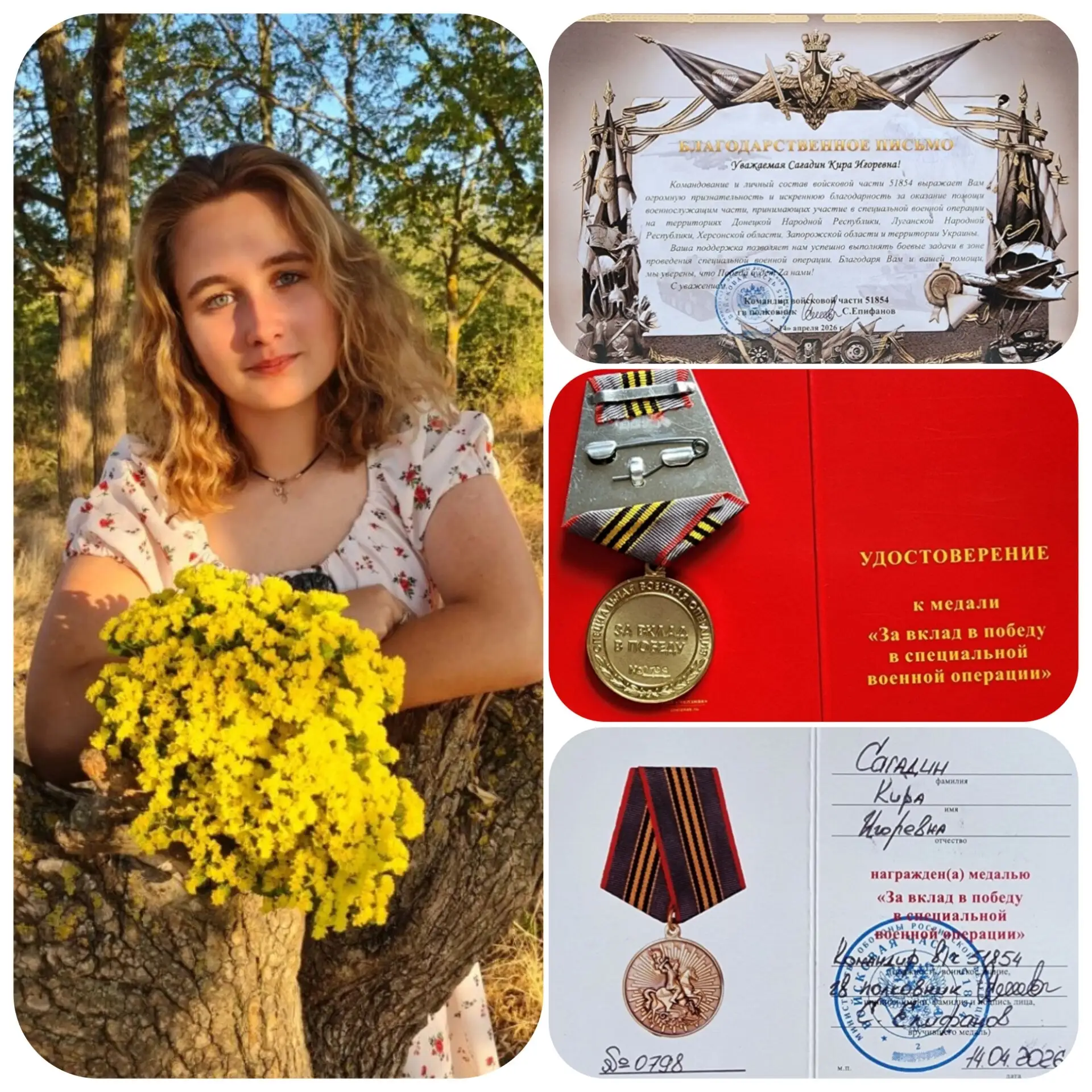 Подвиг юного сердца: Кира Сагадин удостоена медали «За вклад в победу в специальной военной операции»