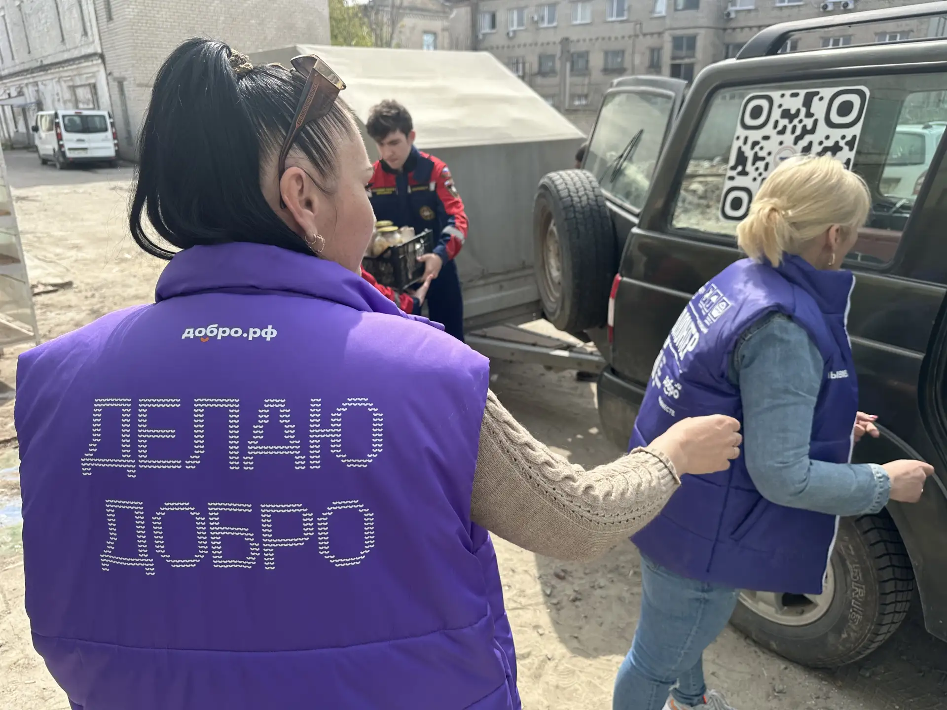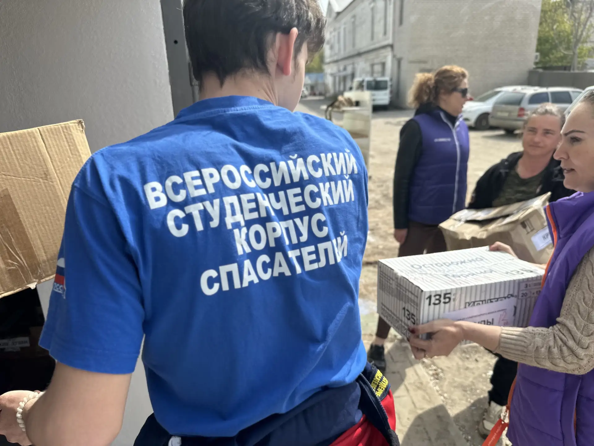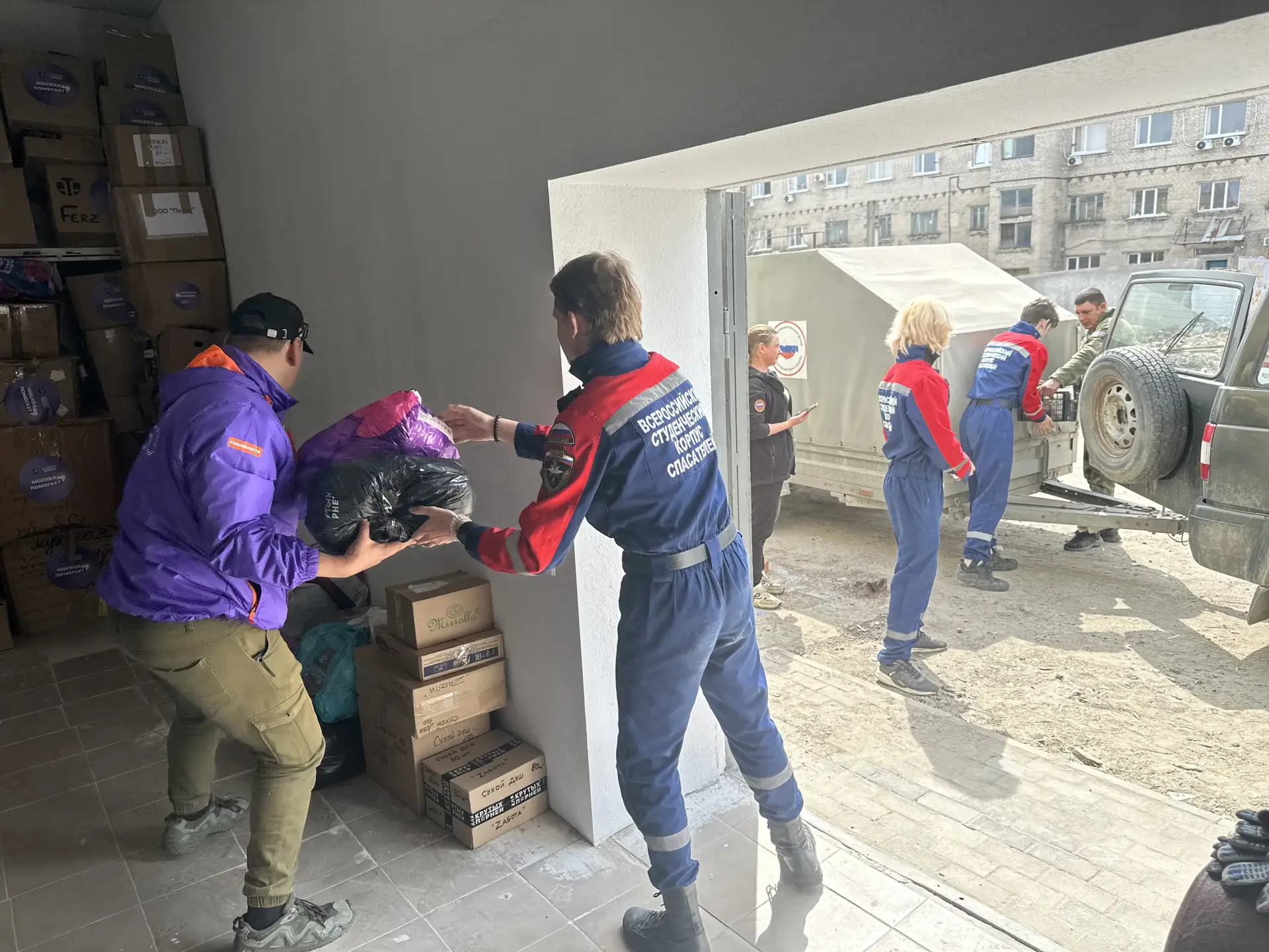 В разгрузке гуманитарного груза приняли участие: