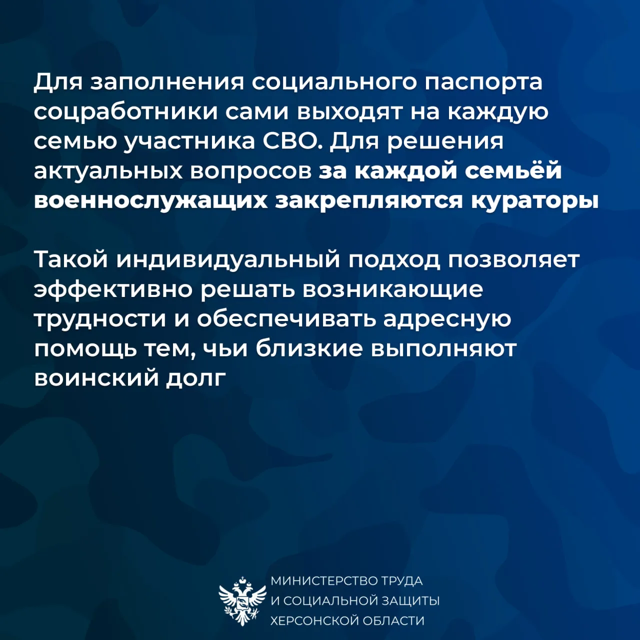 Инициатором внедрения этого эффективного механизма выступило Министерство труда и социальной защиты Херсонской области, сделав ставку на индивидуальный подход и оперативность. Такой формат гарантирует, что помощь будет не только быстрой и адресной, но и максимально эффективной для каждой семьи защитника Отечества.