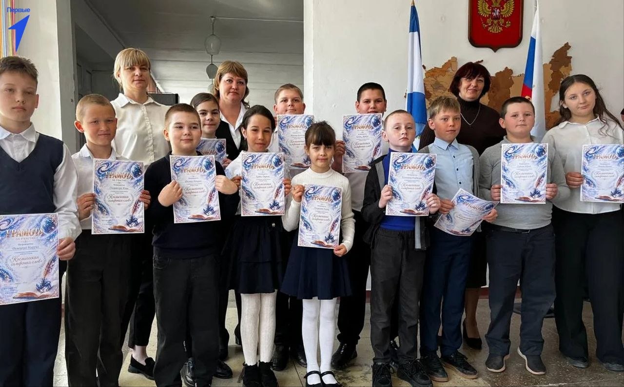 В Строгановской школе Чаплинского округа на общешкольной линейке подвели итоги конкурса выразительного чтения, посвященного Дню Космонавтики.