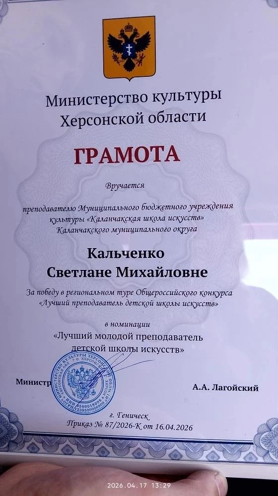 В Херсонской области состоялся региональный этап общероссийского конкурса «Лучший преподаватель детской школы искусств».