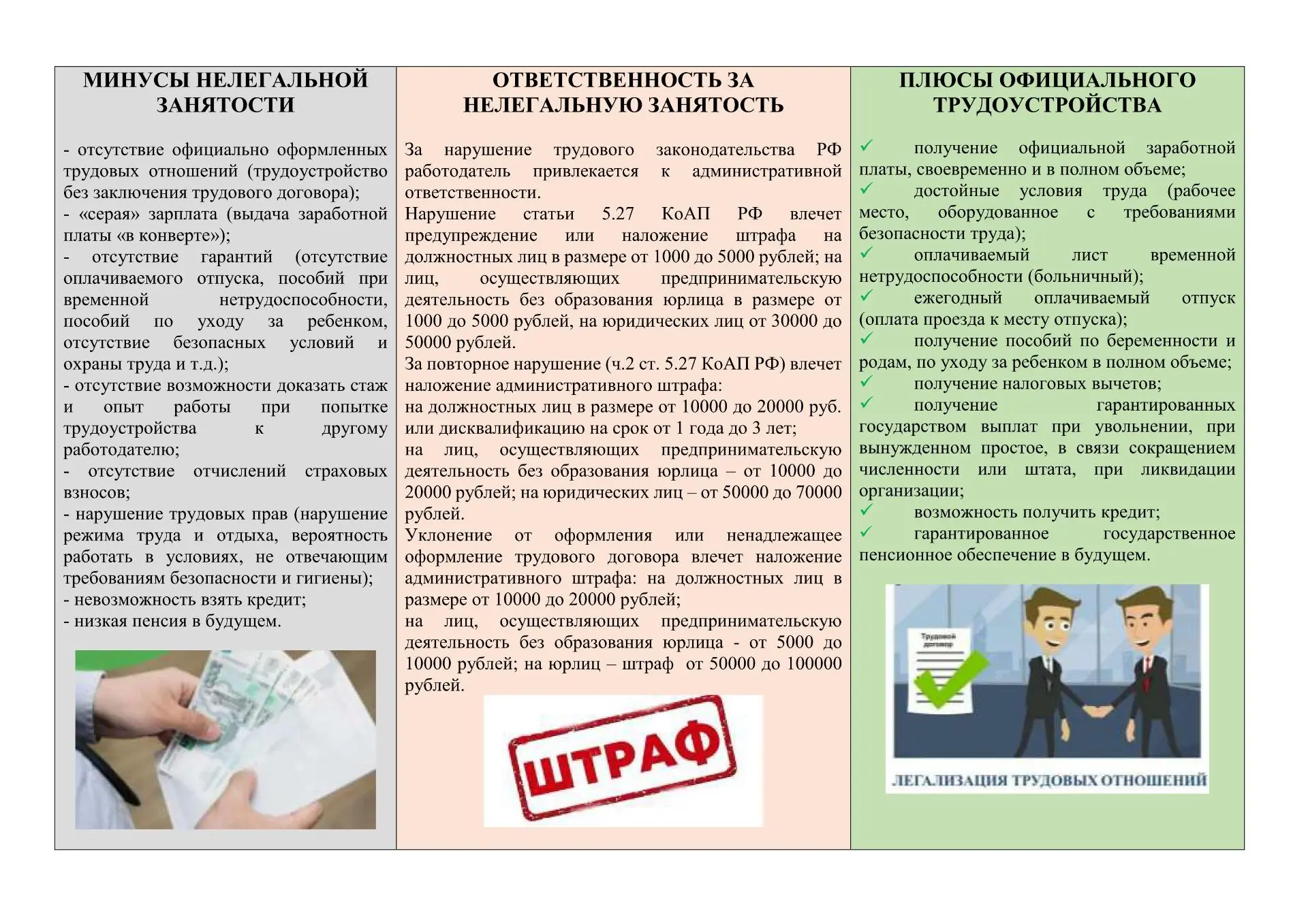 Последствия нелегальной занятости весьма существенны: работники лишаются законных прав и будущей пенсии, а государственные бюджеты недополучают налоги и страховые взносы.»