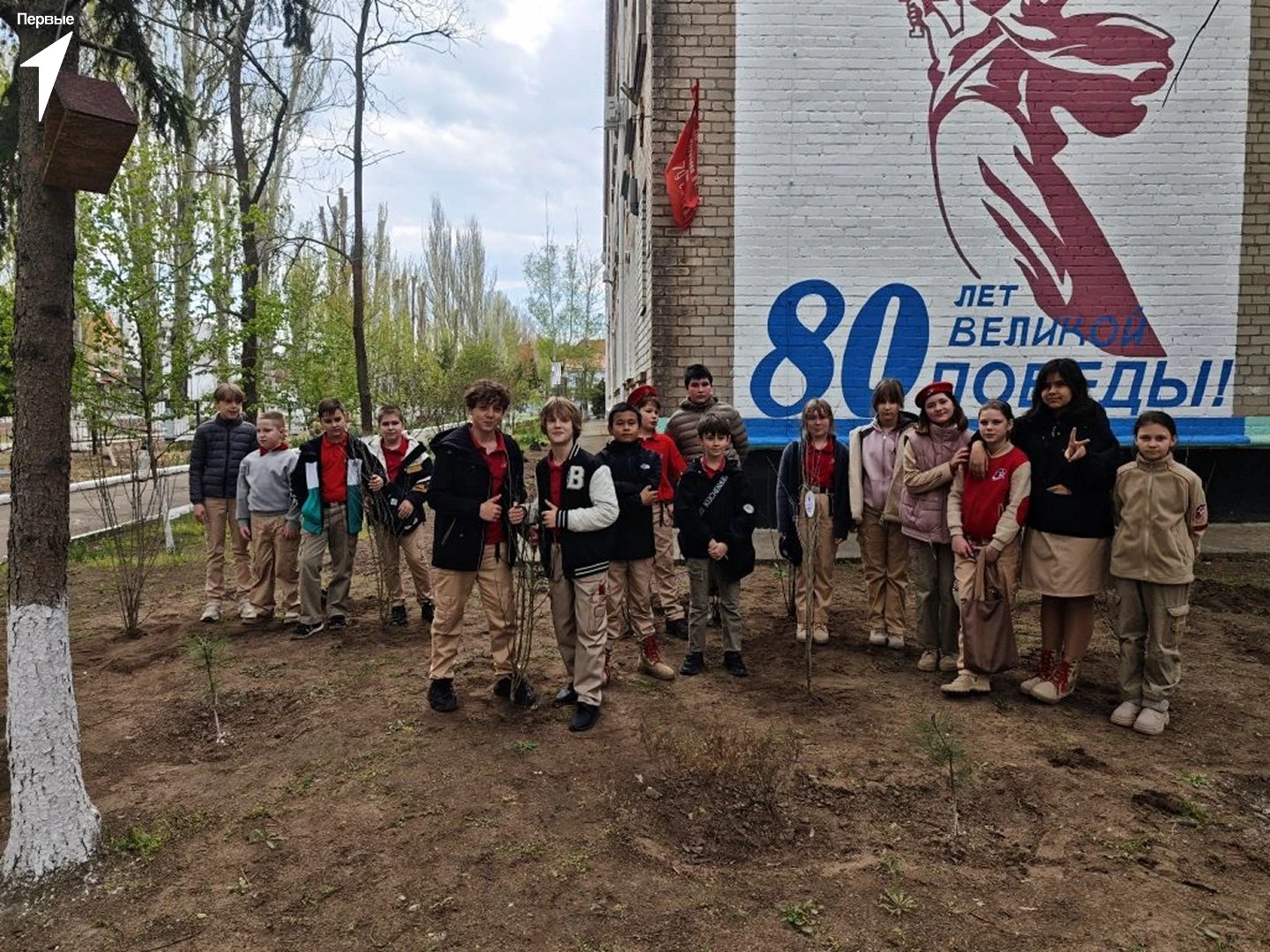 В честь героев Великой Отечественной войны собравшиеся дружно высадили во дворе учебного заведения несколько рядов деревьев. Благодаря слаженной и усердной работе получилось справиться за короткое время.