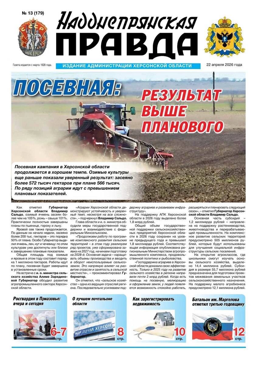 А также программа телепередач, «Диктант Победы» (24 апреля), вакансии контрактной службы и исторический материал об освоении Новороссии – в новом выпуске «Надднепрянской правды»!