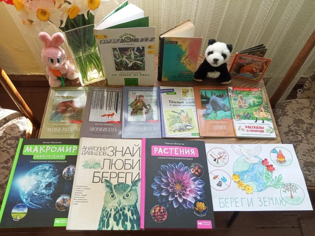 В библиотеке прошла выставка «Земля в твоих ладошках», посвященная охране природы. На ней были представлены книги известных писателей — К. Ушинского, В. Астафьева, М. Пришвина, К. Паустовского, Б. Житкова, В. Бианки, Е. Чарушина. Эти произведения учат детей любить природу, быть внимательными и замечать необычное.