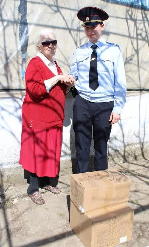Полицейские поблагодарили Светлану Ивановну за творчество и вручили продуктовый набор.