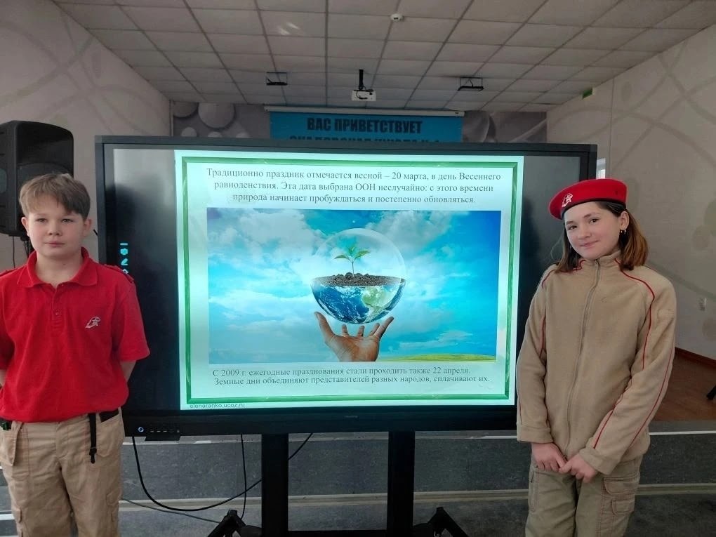 В рамках празднования Дня Земли в школе также прошёл познавательный воспитательный час. Юнармейцы активно обсуждали экологические проблемы, узнали о важности бережного отношения к окружающей среде и о том, какой вклад каждый может внести в сохранение нашей планеты. Они говорили о сортировке мусора, экономии ресурсов и значимости заботы о чистоте Земли — нашего общего дома.