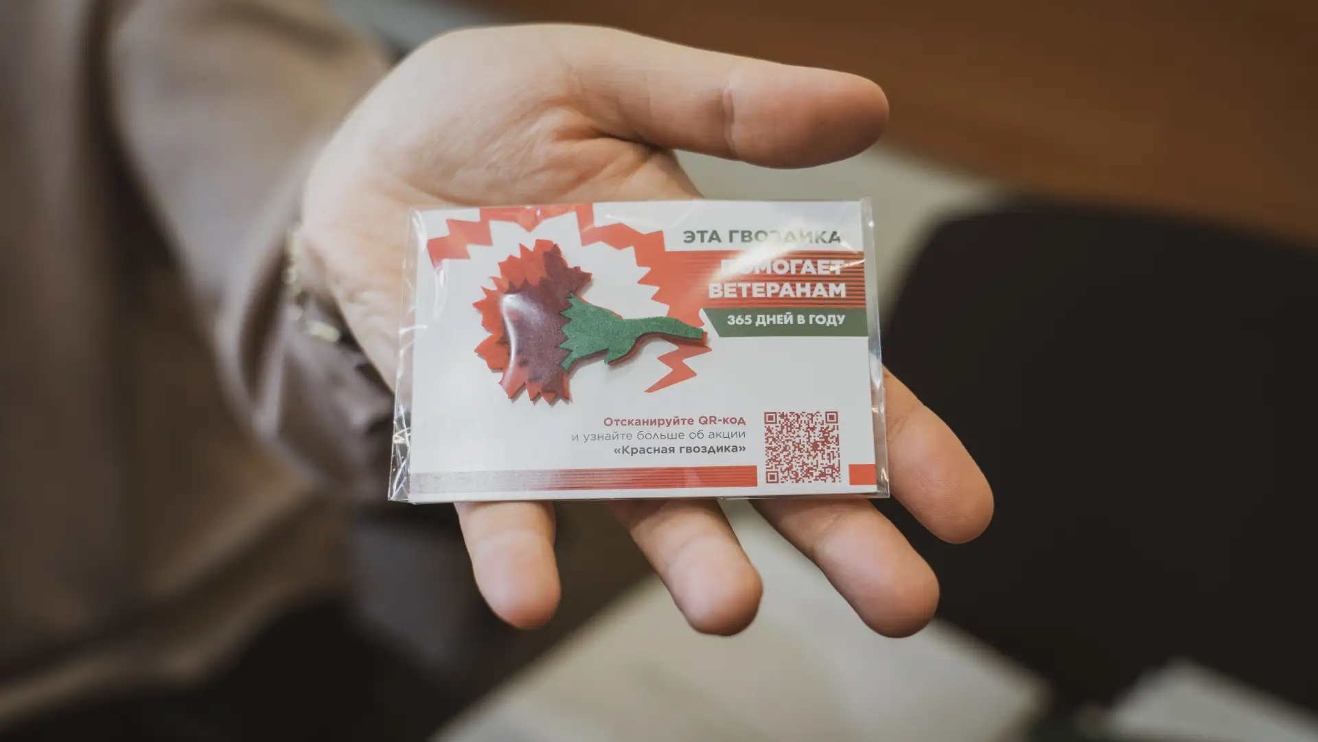 Каждый желающий мог получить значок с изображением красной гвоздики — символа памяти и уважения к ветеранам в обмен на благотворительное пожертвование.