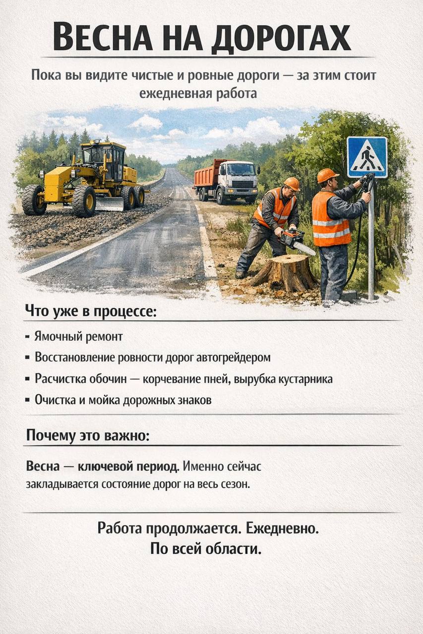 Весна на дорогах!. Пока вы видите чистые и ровные дороги — за этим стоит ежедневная работа Что уже в процессе: