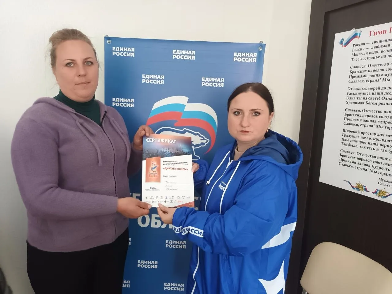 На площадке в местном отделении Единой России в написании диктанта приняли участие сотрудники учреждений культуры, Совета депутатов и активисты партии. Задания требовали не только общей эрудиции, но и глубоких знаний истории, внимания к важным фактам и понимания значимости подвига советского народа.
