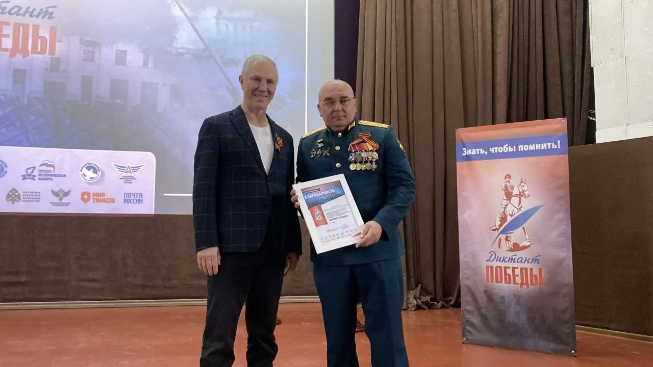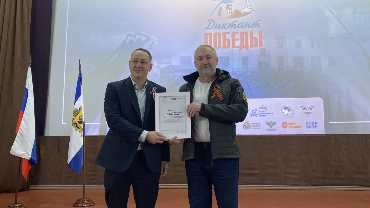 Огромное спасибо организаторам Диктанта Победы в Херсонской области. С Владимиром Сальдо перед тестированием вручили благодарности за значительный вклад в патриотическое воспитание подрастающего поколения и организацию площадок Диктанта Победы личному составу Военной комендатуры Херсонской области, Управления Росгвардии по Херсонской области и Военного комиссариата Генического округа, а также коллективу «Херсонского областного художественного музея» и директору Генического Краеведческого музея округа Максиму Проскурне. Учитывая неспокойную, боевую обстановку в регионе – эта работа практически героическая.