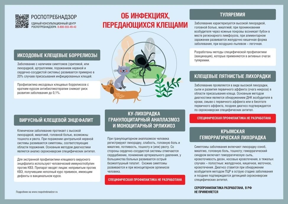 Более подробно о профилактике клещевого энцефалита и других инфекций, передающихся клещами можно узнать также в официальном канале Роспотребнадзора в МАХ: https://clck.ru/3TEogm.
