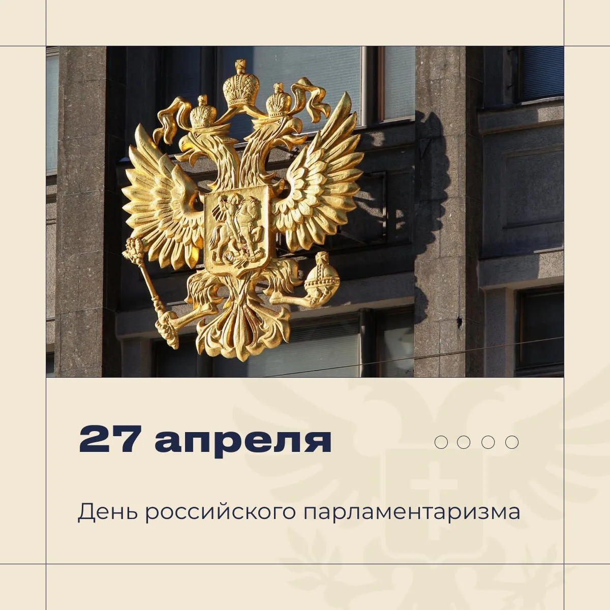Ровно 120 лет назад, 27 апреля 1906 года в Таврическом дворце Санкт-Петербурга начало работу первое в истории России народное представительство — Государственная дума. Этот день, установленный как памятная дата в 2012 году, по праву считается точкой отсчёта парламентских традиций в нашем Отечестве.