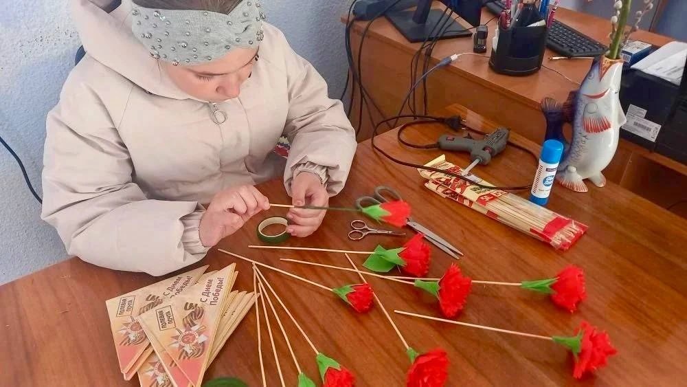В Приморском Доме культуры Скадовского муниципального округа тихо и сосредоточенно готовятся к великому празднику — Дню Победы. Ребята делают гвоздики из гофрированной бумаги, складывают фронтовые треугольники и пишут в них тёплые слова благодарности.