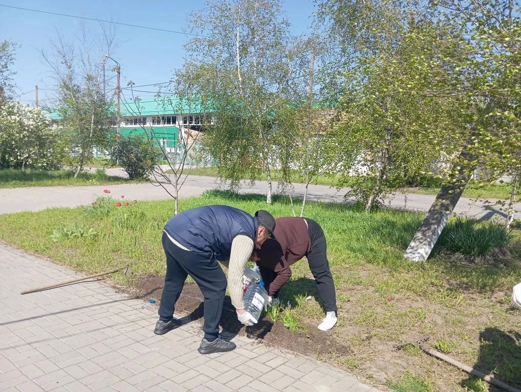 Сотрудники администрации провели уборку территории вокруг здания администрации на улице Ленина. Это мероприятие стало частью общероссийской инициативы по наведению порядка и благоустройству общественных пространств.