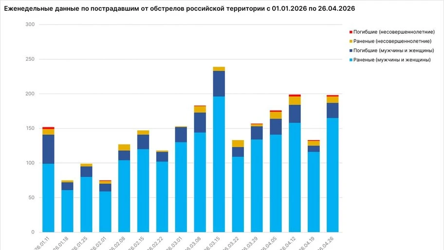 По данным аппарата посла по особым поручениям, за минувшую неделю в России от обстрелов украинских нацистов пострадали 198 мирных жителей: ранены 174 человека, в том числе 9 несовершеннолетних, погибли 24 человека, в том числе 2 несовершеннолетних.
