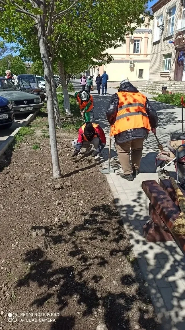 27 апреля работники МКУ «Азовкоммунсервис» продолжили планомерную работу по наведению порядка и подготовке территорий к празднованию Дня Победы.