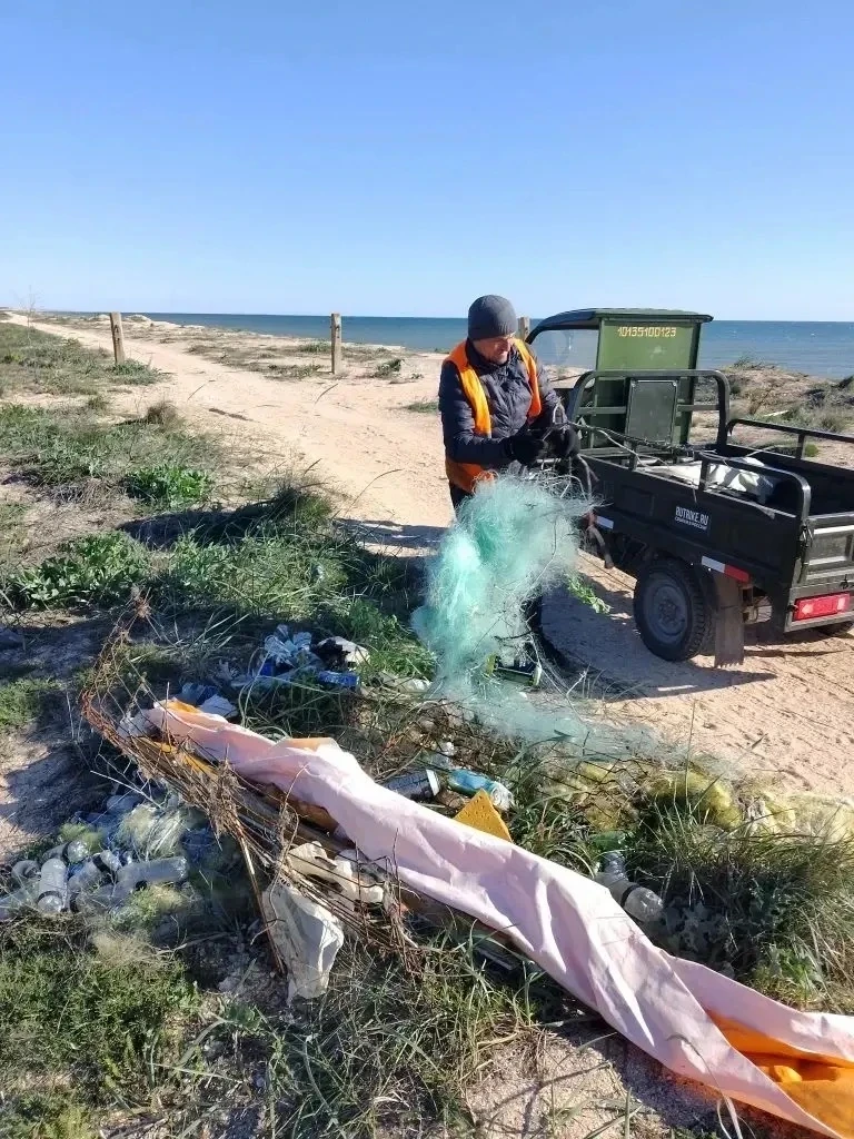 Уборка мусора на территории пляжа.