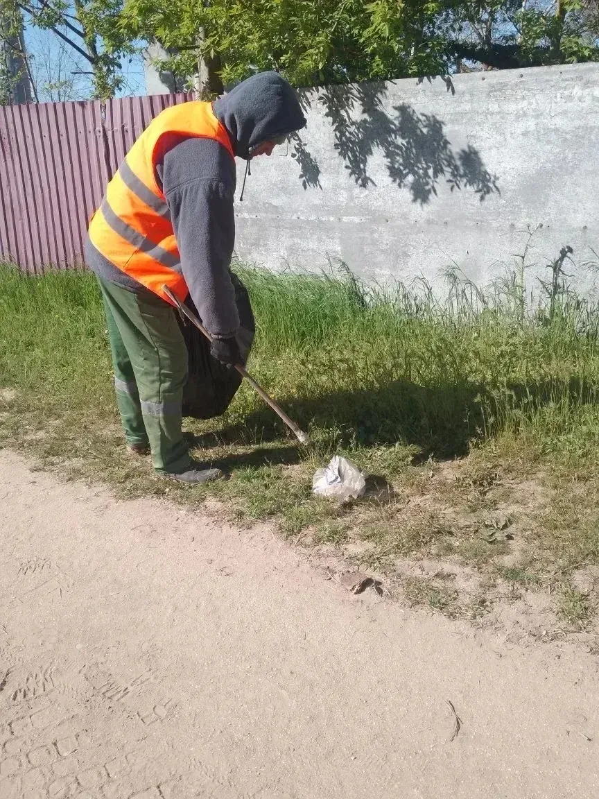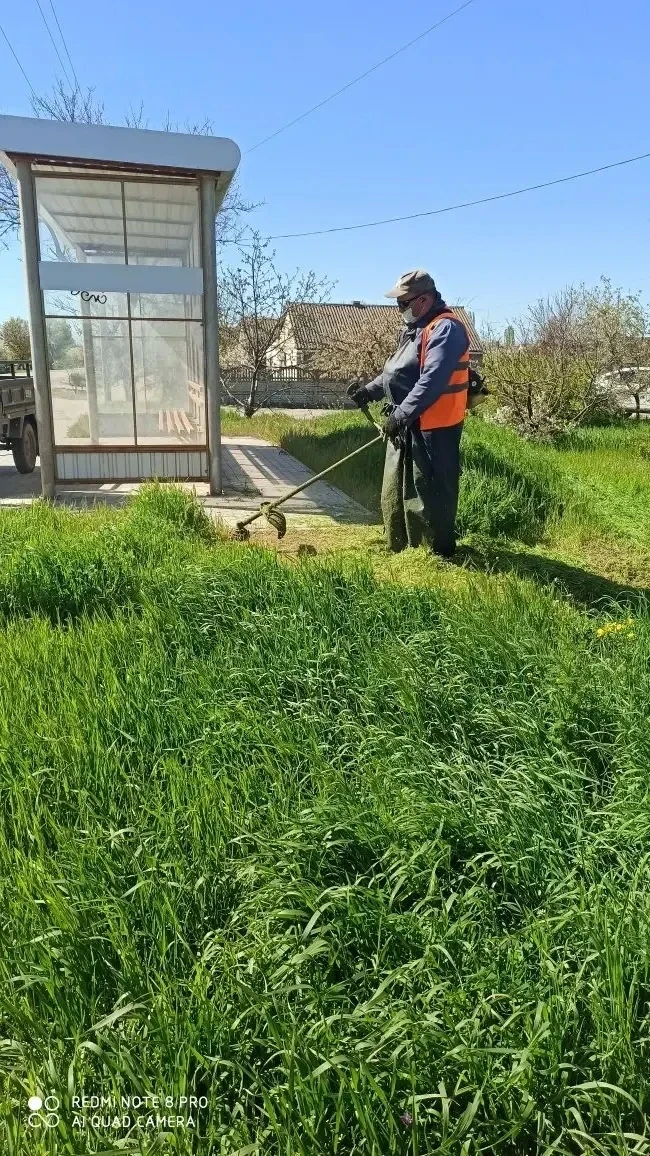 Санитарная уборка обочин на улицах Приморской, Ковыльной, Гагарина и Центральной.
