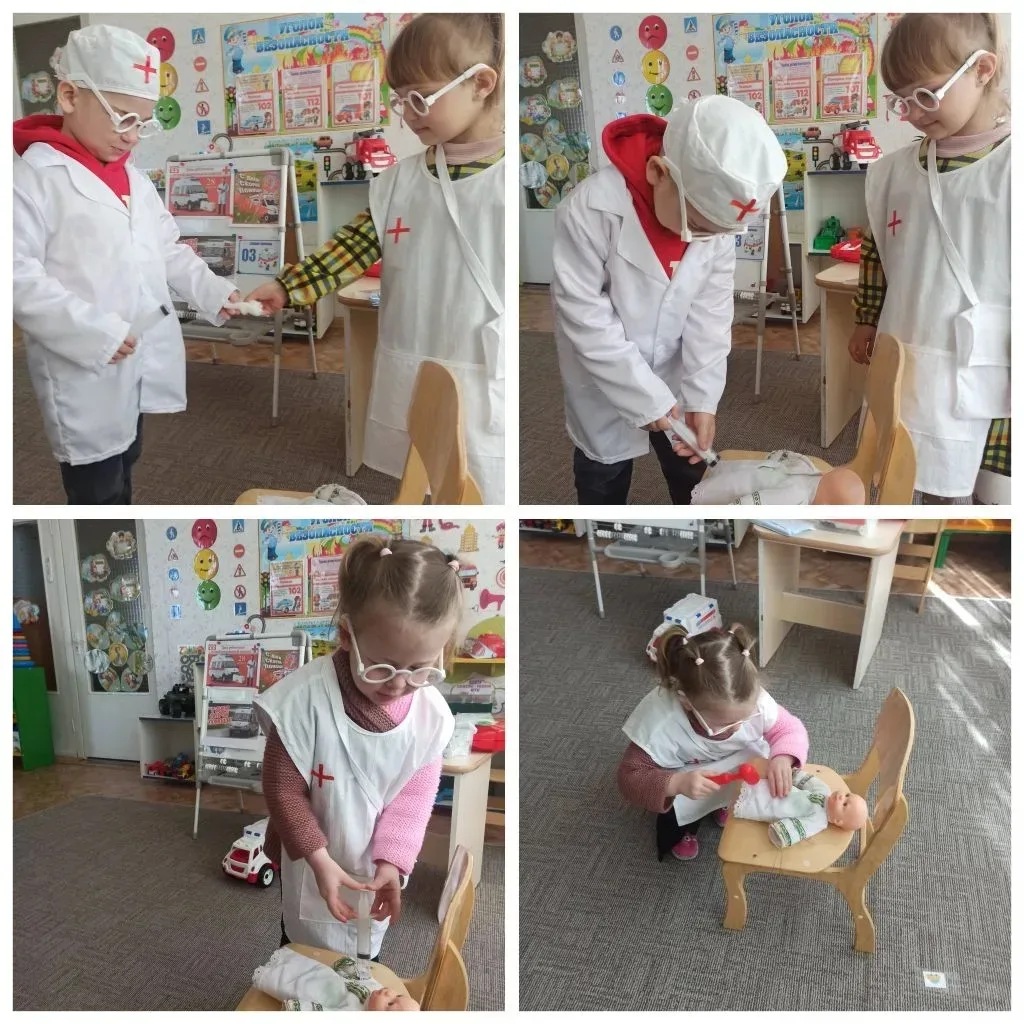 Самым ярким моментом занятия стала сюжетно-ролевая игра «Скорая помощь». Ребята с большим интересом «выезжали по вызову», оказывали помощь пострадавшей кукле Маше: измеряли температуру, слушали дыхание, успокаивали и «лечили». Игра не только увлекла малышей, но и помогла запомнить важные правила безопасности и взаимопомощи.
