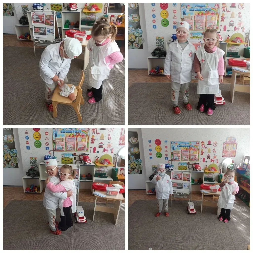 Воспитатель провела с ребятами беседу о людях, которые ежедневно спасают жизни, о важности и благородстве профессии врача, фельдшера, медсестры. Дети узнали, какими качествами должны обладать те, кто приходит на помощь в самую трудную минуту: добротой, внимательностью, смелостью и отзывчивостью.