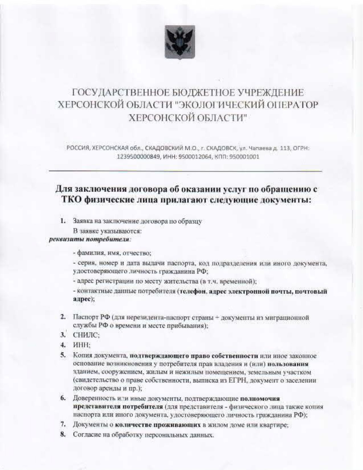 ГБУ ХО "Экологический оператор Херсонской области" приглашает Вас на личный прием граждан, который состоится 29 апреля 2026 года с 13:00.