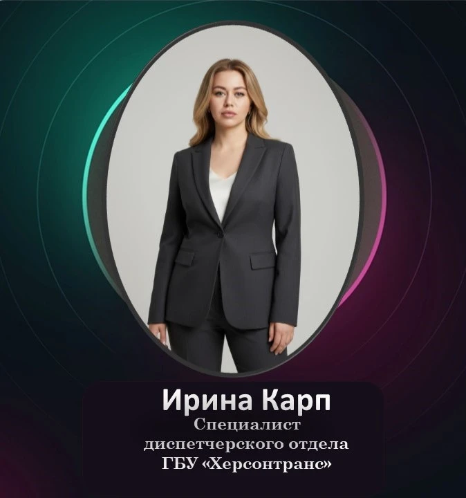 Сегодня мы хотим познакомить вас со специалистом диспетчерского отдела ГБУ «Херсонтранс» - Ириной Карп, которая работает на нашем предприятии с 2023 года и за это время зарекомендовала себя как ответственный и добросовестный сотрудник. Она отлично справляется с поставленными задачами и всегда выполняет свои обязанности на высоком уровне. Ирина отличается отзывчивостью и уважительным отношением к пассажирам и окружающим. В коллективе