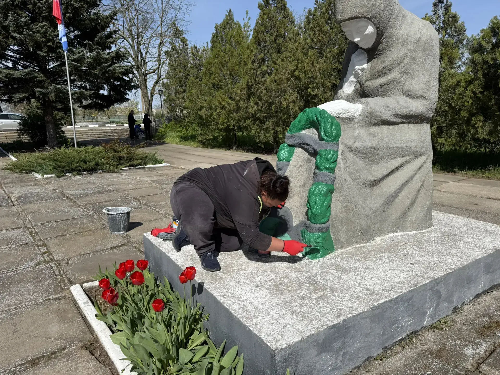 Дружный коллектив привел в порядок общественное пространство: покосил и убрал траву, очистил и покрасил бордюры. Особое внимание уделили памятнику ветеранам Великой Отечественной войны и стеле — их очистили и обновили.