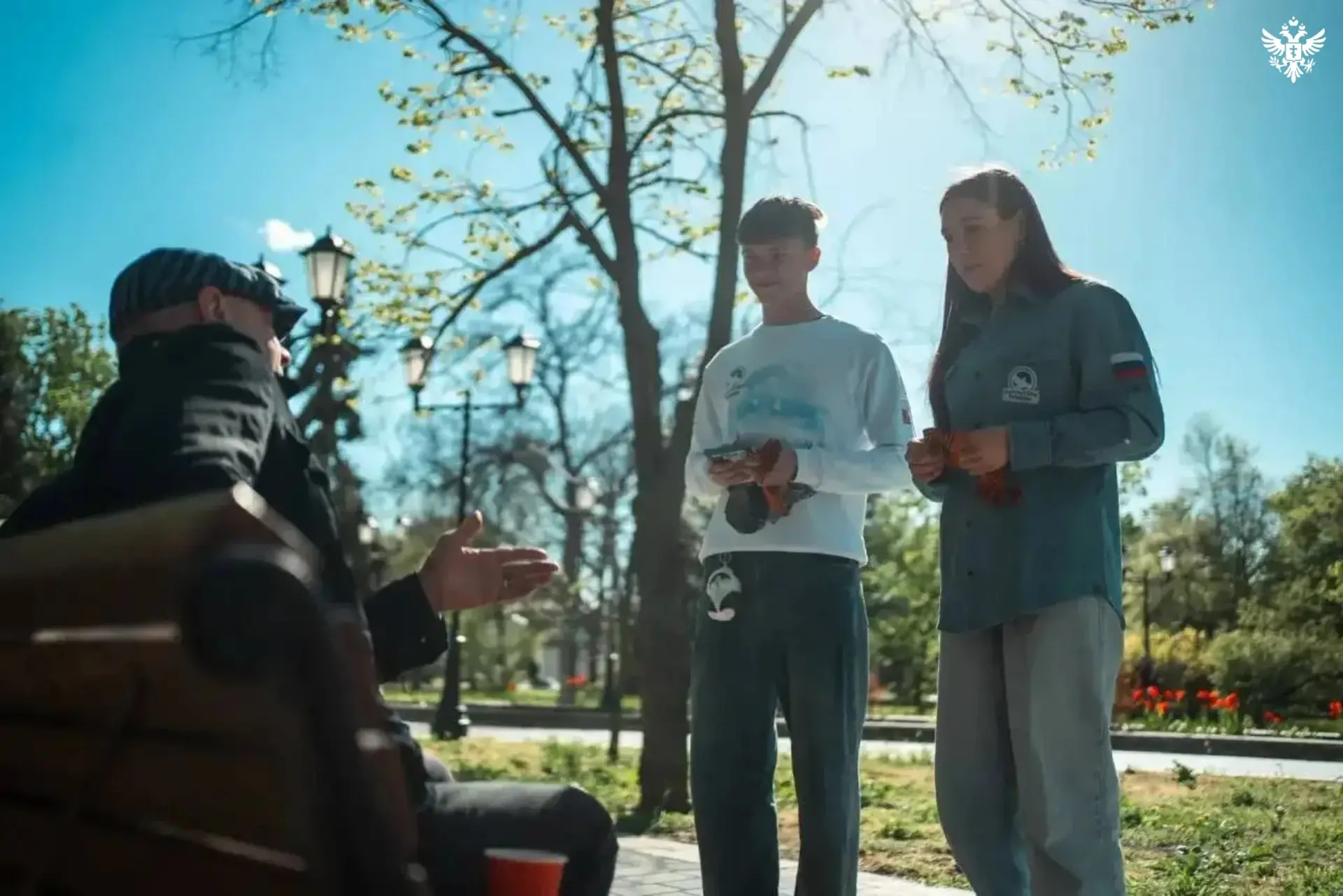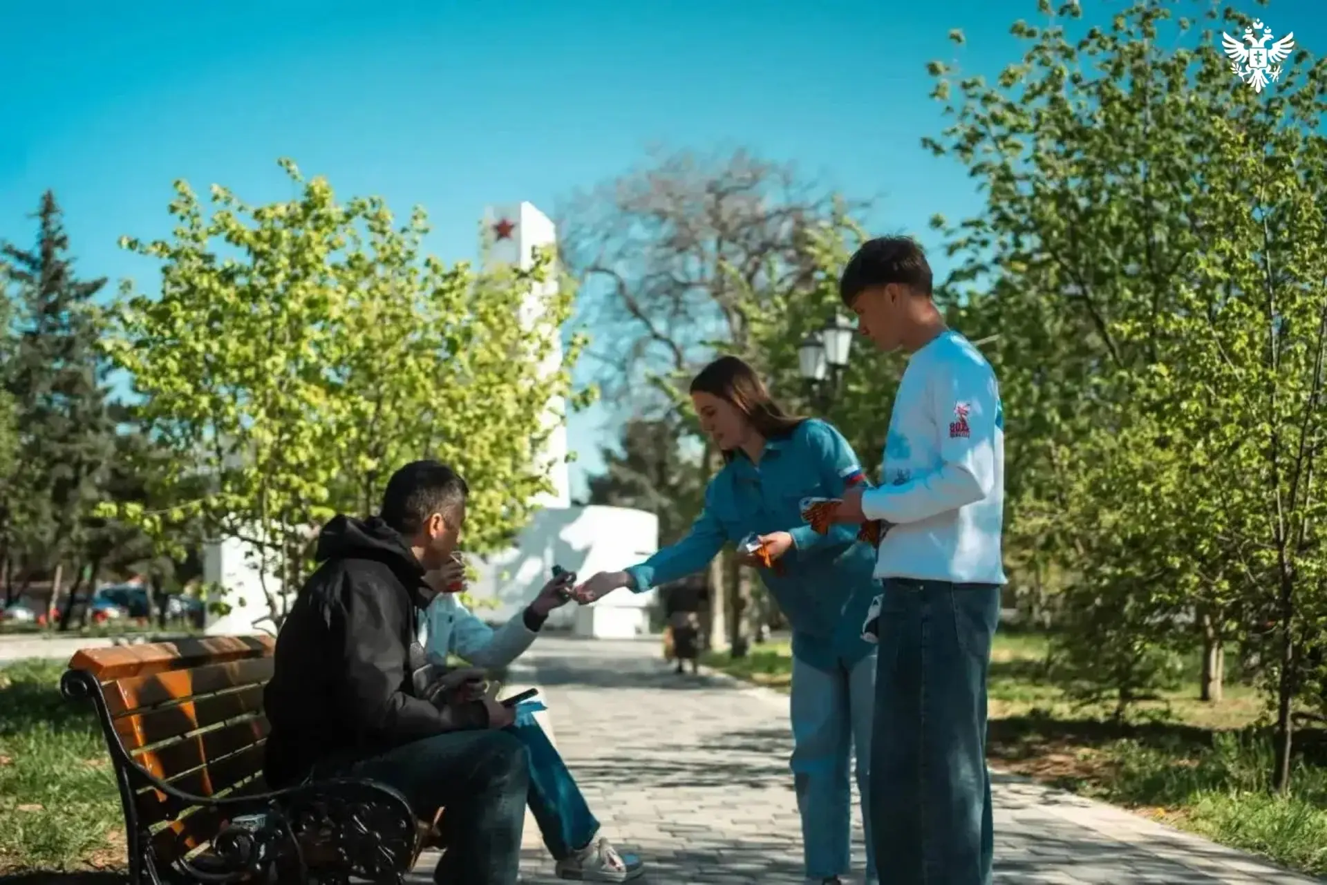 Активисты движения «Волонтёры Победы» в Геническе присоединились к Международной акции «Георгиевская лента». Молодые люди раздавали жителям города ленточки и информационные брошюры, в которых рассказали об истории символа, правилах его ношения и значении.