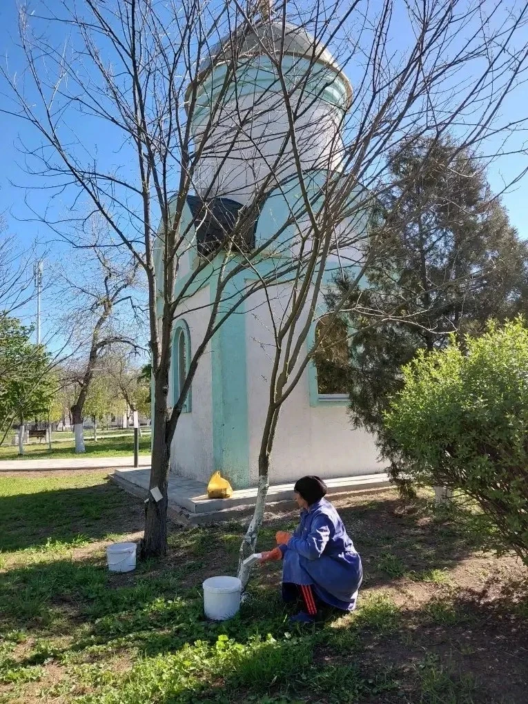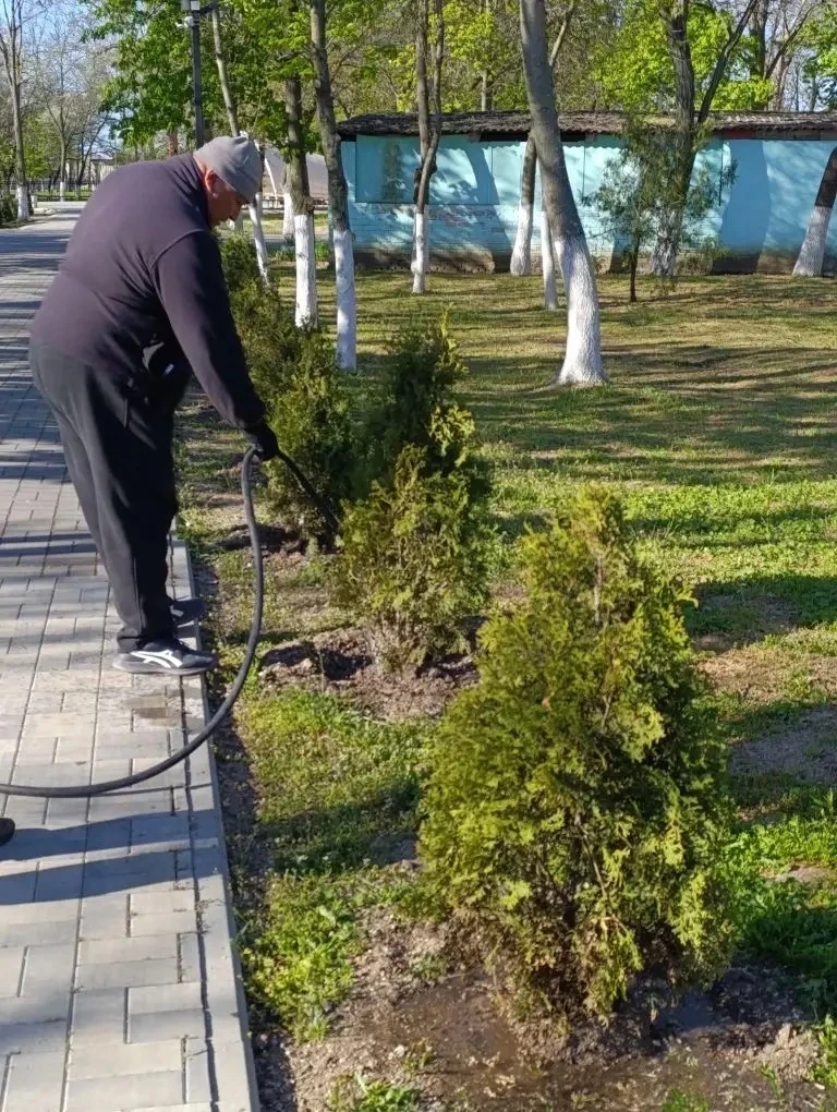 • В парке культуры и отдыха: очистка урн и общественных туалетов, покос и уборка скошенной травы, побелка деревьев, полив саженцев хвойных пород.
