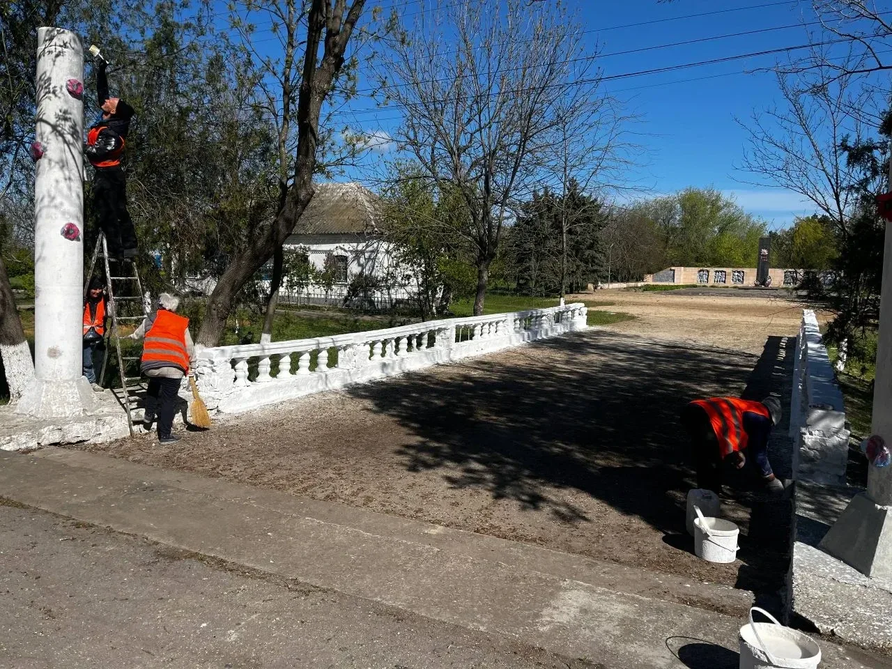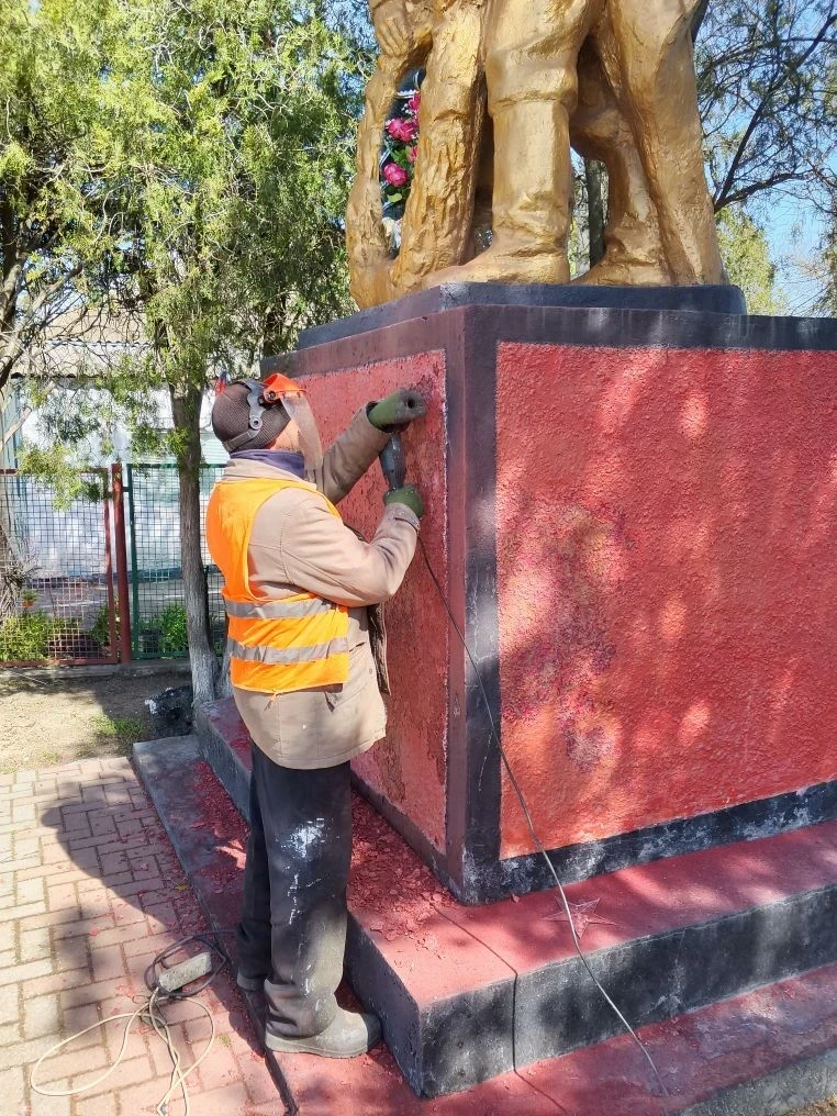 28 апреля сотрудники МКУ «Горжилстрой» провели комплекс мероприятий по благоустройству и ремонту памятных мест, расположенных в населённых пунктах Генического муниципального округа.