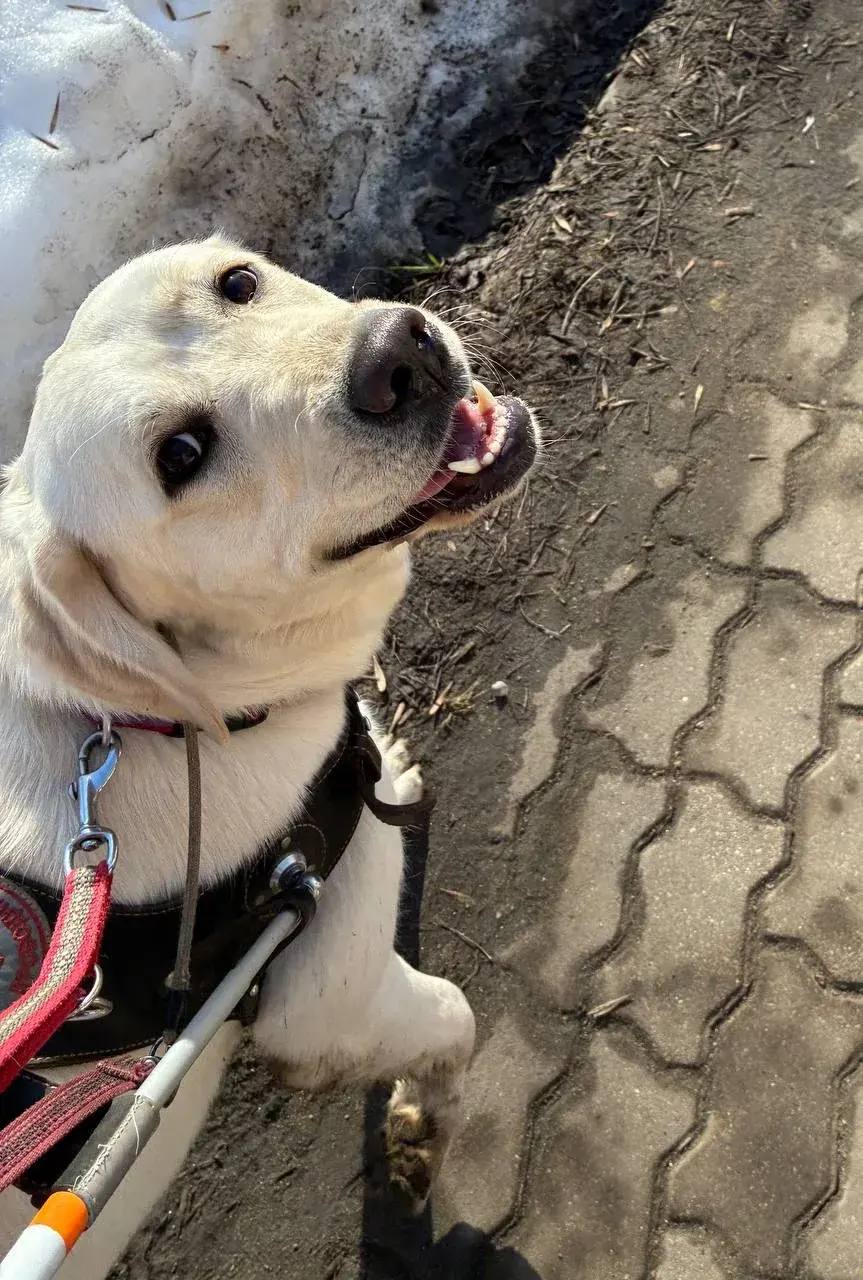 Ровно год назад Халву воспитывала семья волонтёров кинологического центра «Собаки-помощники». А сегодня будущий поводырь проходит специальную подготовку и обучение, после которых отправится жить к человеку с нарушением зрения.