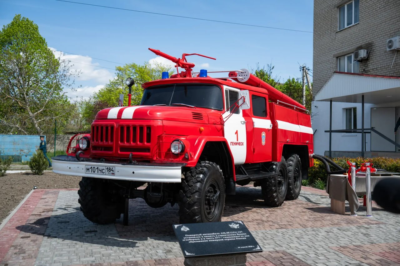 В Геническе открыли монумент легендарной пожарной автоцистерне