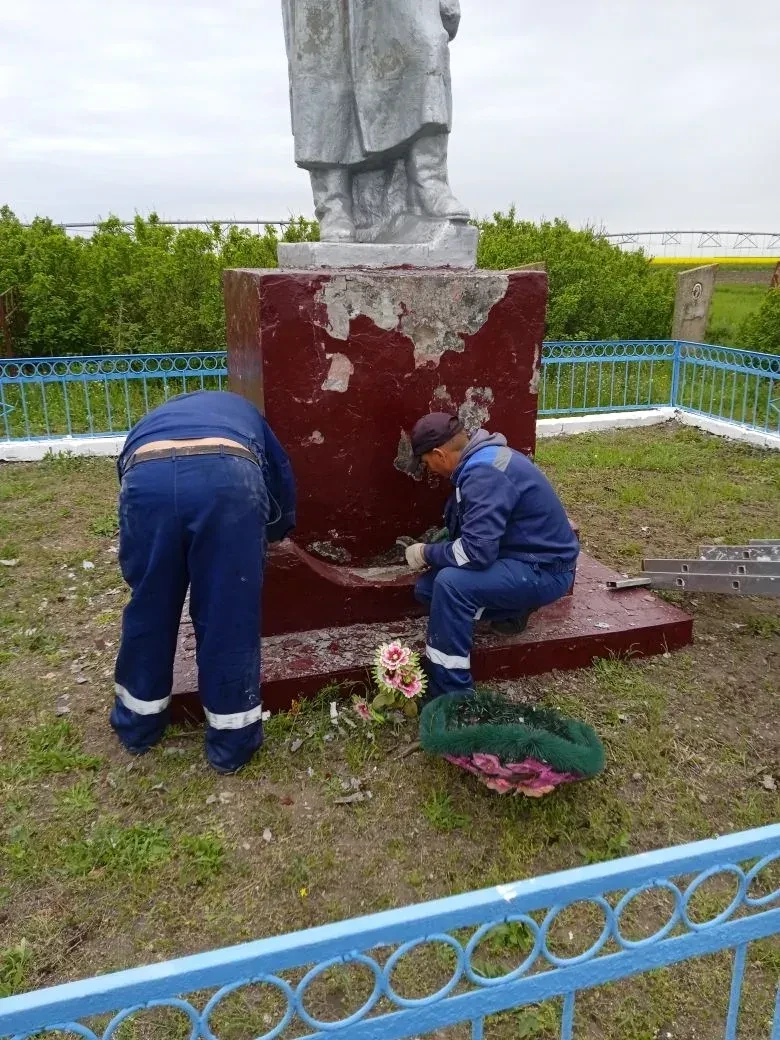 В Чаплинском муниципальном округе продолжаются работы по благоустройству памятных сооружений