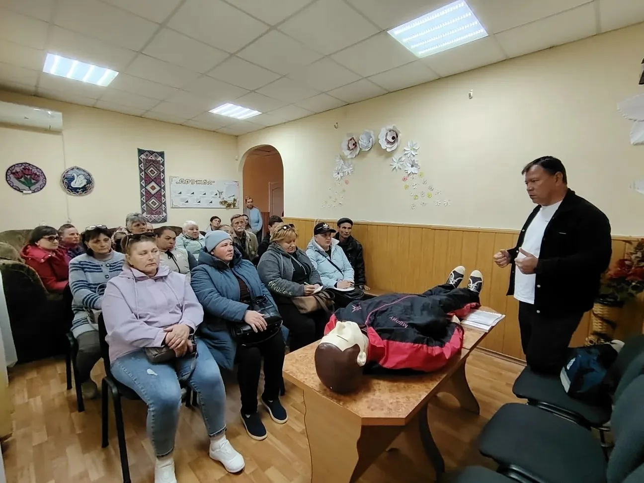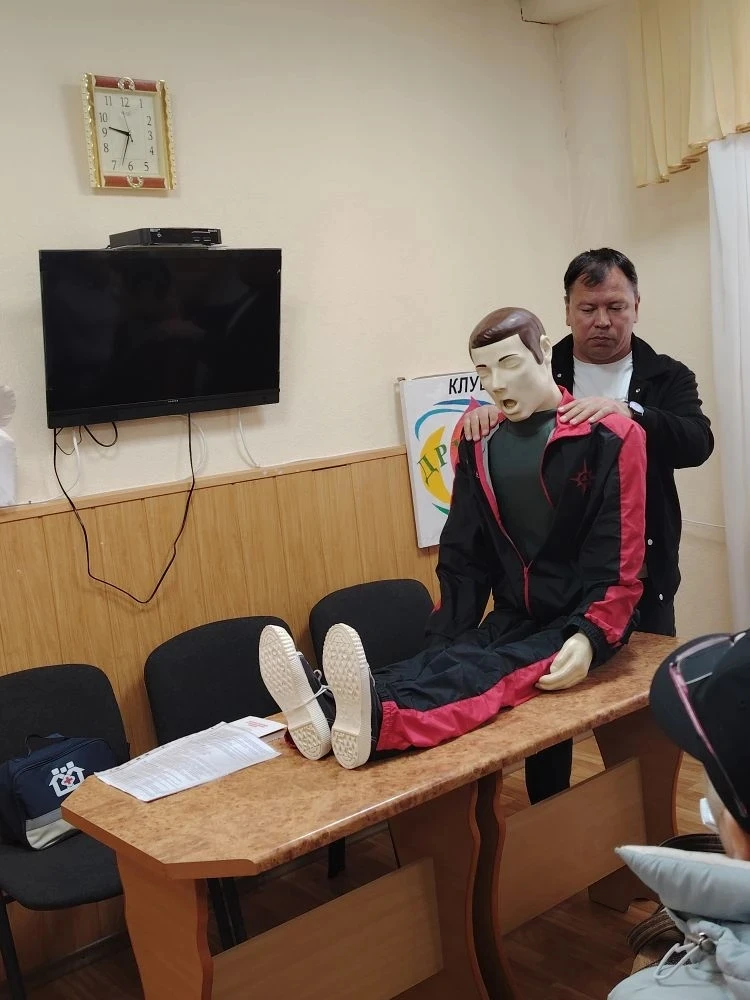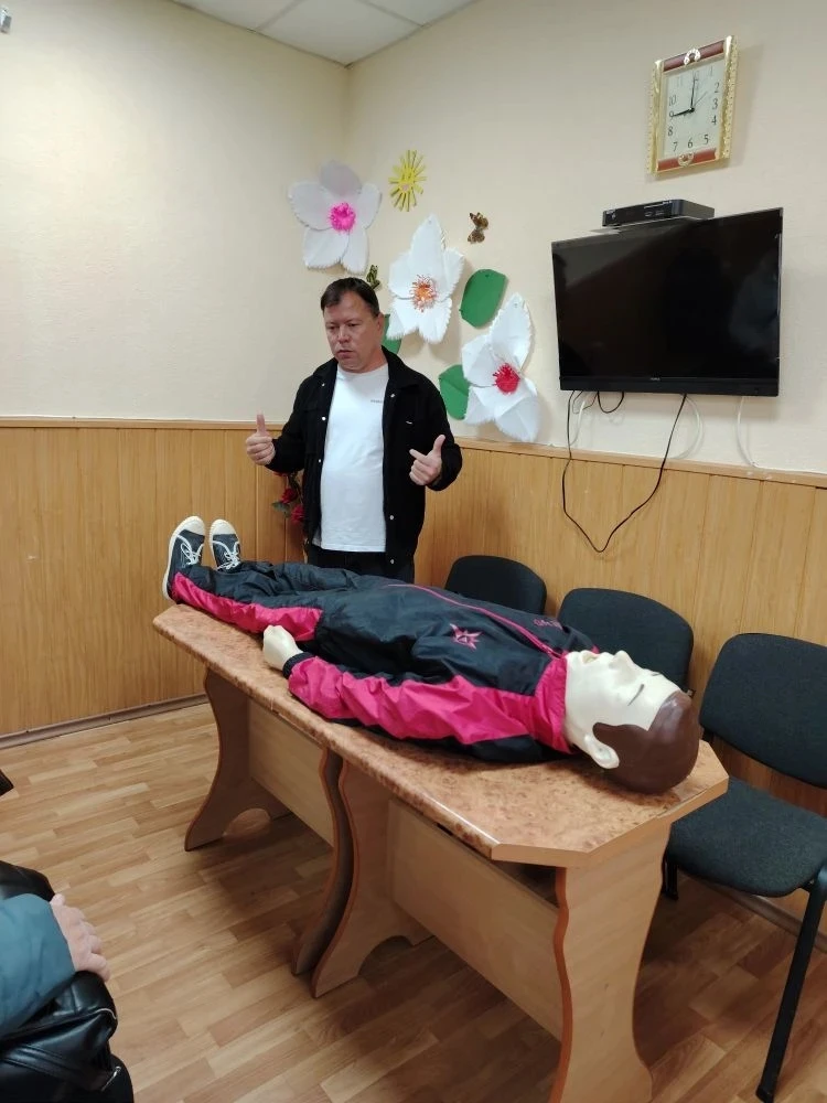 Особое внимание было уделено практической части занятия. Участники обучения смогли отработать полученные знания на специальном тренажёре, на котором им продемонстрировали алгоритм оказания первой медицинской помощи.