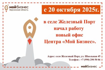 Радостная новость специально для Вас!С 20 октября 2025 года в селе Железный Порт открыл двери новый офис Центра «Мой Бизнес». Теперь вы можете легко и оперативно получать необходимую поддержку для успешного начала и дальнейшего роста своего дела прямо...